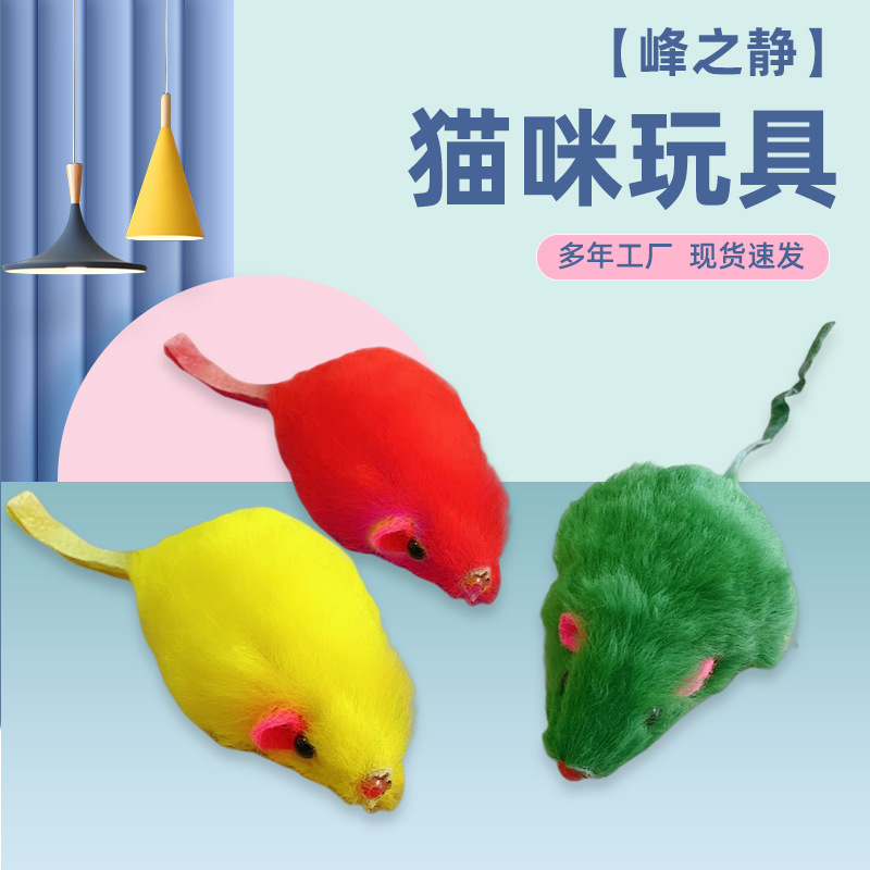 カラフルな羽根の尻尾が付いたぬいぐるみの小さなネズミ、ペットの猫を楽しませるリアルな猫のおもちゃ