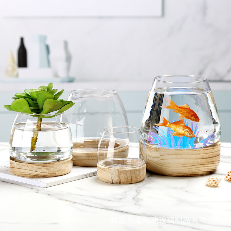 シンプルな日本式木托透明ガラス花瓶客間生け花置物水養植物緑羅水培生態水槽