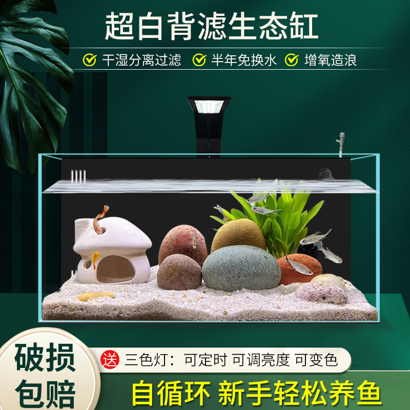 リビング用静音水槽、フィルター付き、水交換不要、一体型ガラス背面フィルター水槽、メーカー卸売、リビングに最適