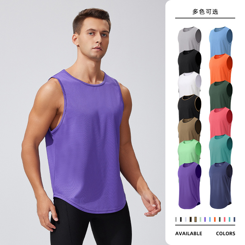 2025国境を越えた新しいスポーツフィットネスベスト男性75綿25ポリエステル氷感広い袖口純色丸襟ベスト