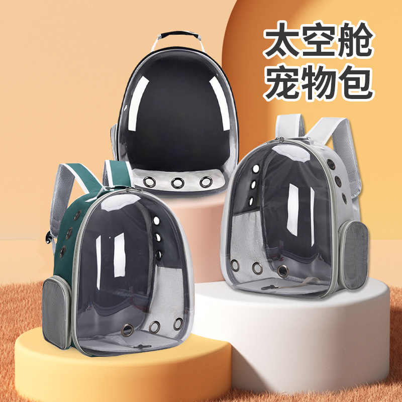 夏の新型シンプル通気性ペットバッグ携帯宇宙室純色リュックサックパノラマ猫透明リュックサック
