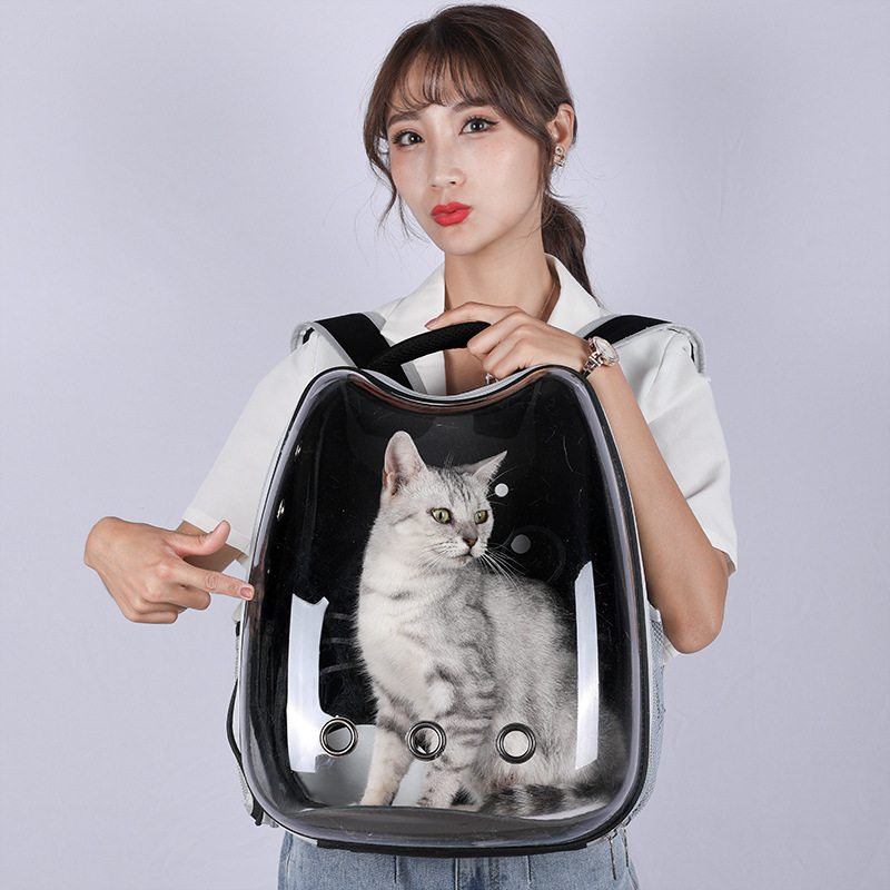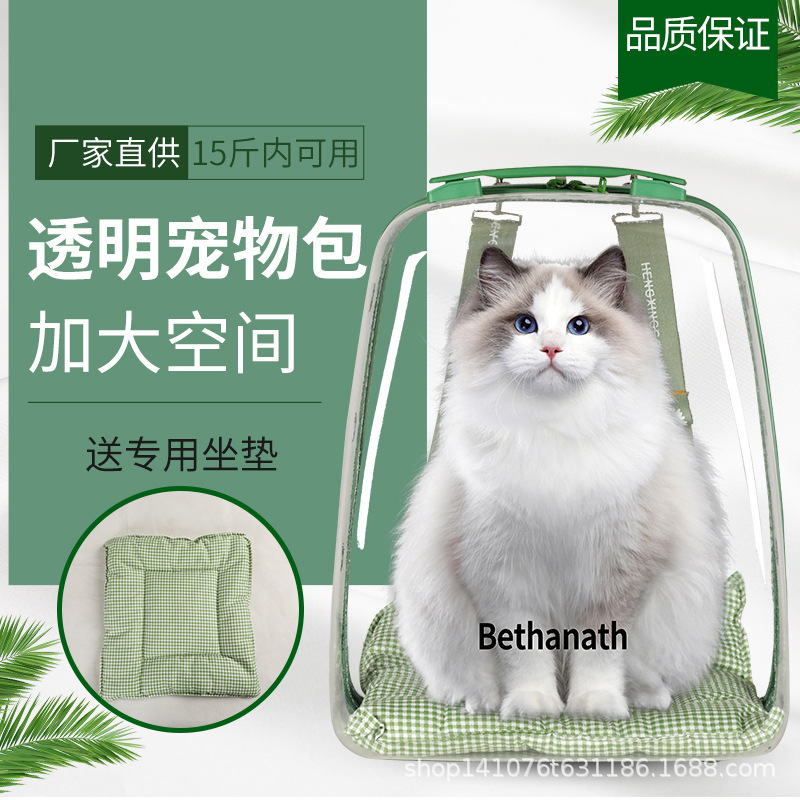 【クッションを送る】通気性のある透明なパノラマの超大空間の肩の猫が外に出ます。