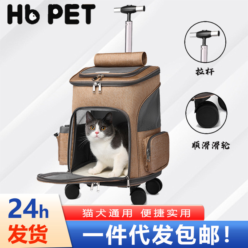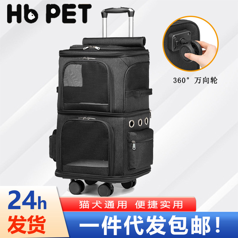 漢邦クロスボーダー二層ペットラバーキャットバッグ旅行アウトドアペット外出スーツケースキャットバッグ大容量卸売り