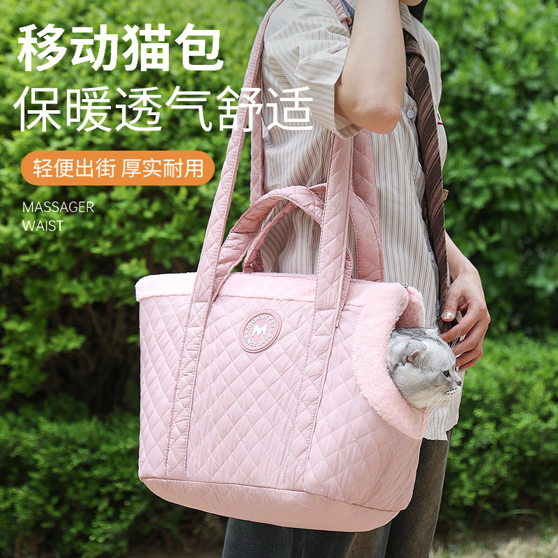 ペットバッグ秋冬猫バッグ保温キルティング綿携帯外出犬バッグ猫大容量外出シングルバッグ