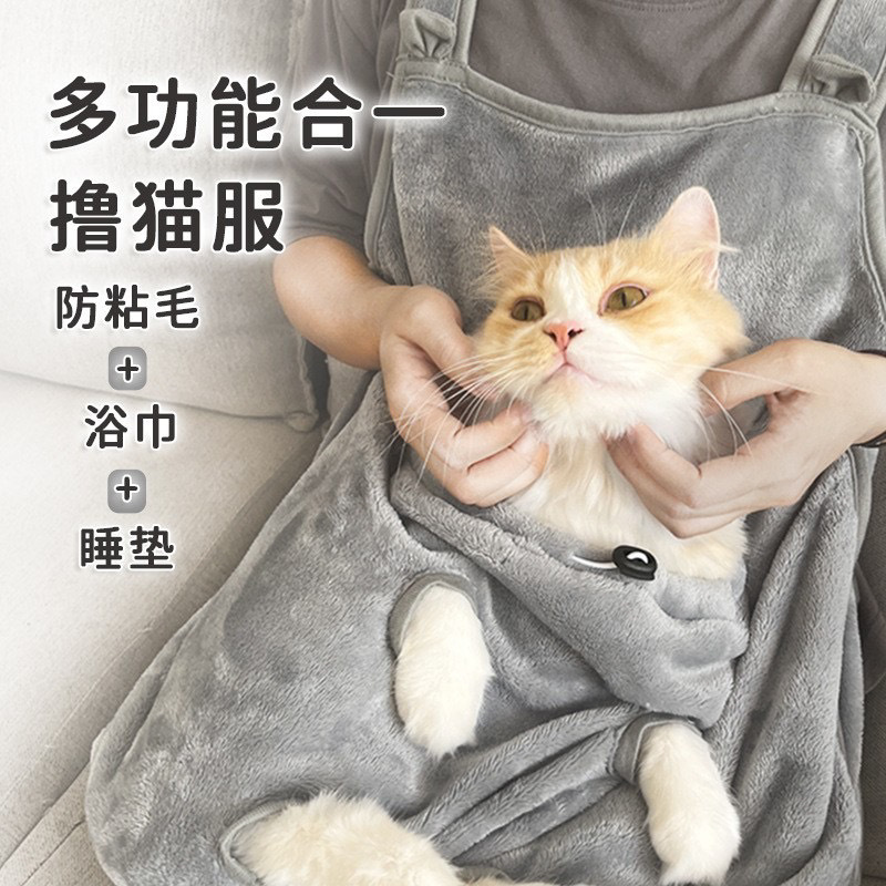 猫のエプロンをして猫の服を抱いて毛の胸にくっつかないで猫のポケットのエプロンを抱いて猫のポケットのペットの服の猫の包みを防ぎます。