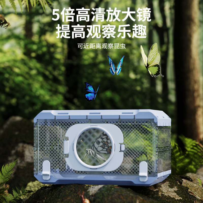 子供の手持ち昆虫籠に蝶のかごを入れて、赤ちゃんのミツバチの昆虫箱を入れます。