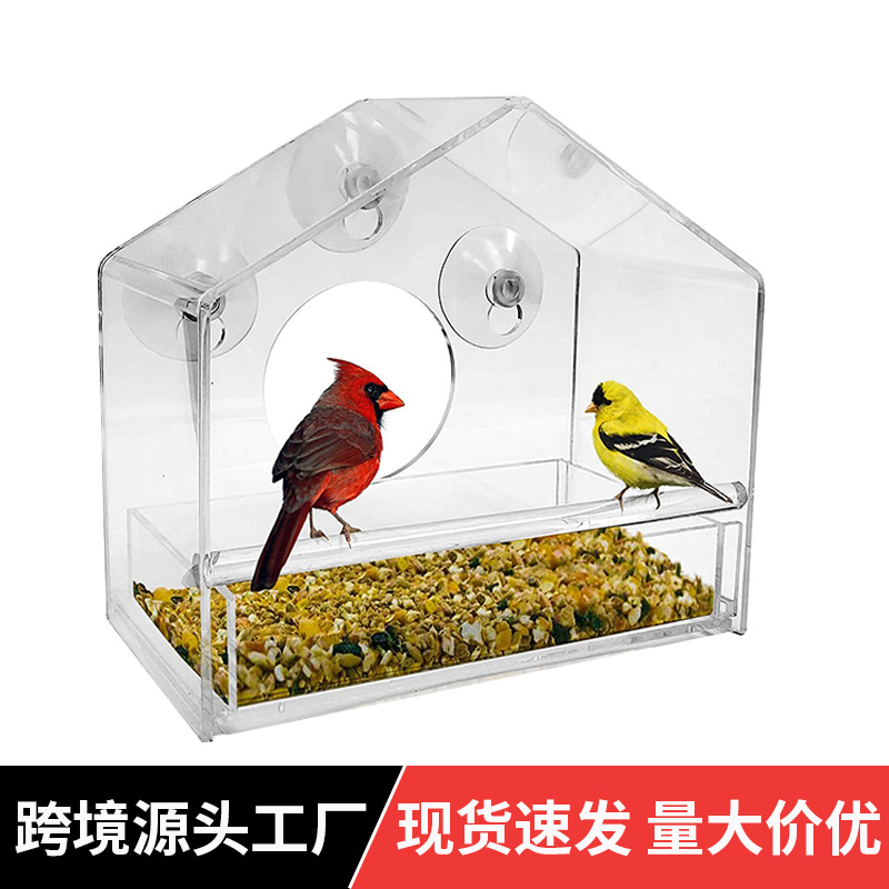 クロスボーダーアクリル鳥かご透明小型ペット鳥壁掛け給餌器屋外吸着式プラスチック給餌器