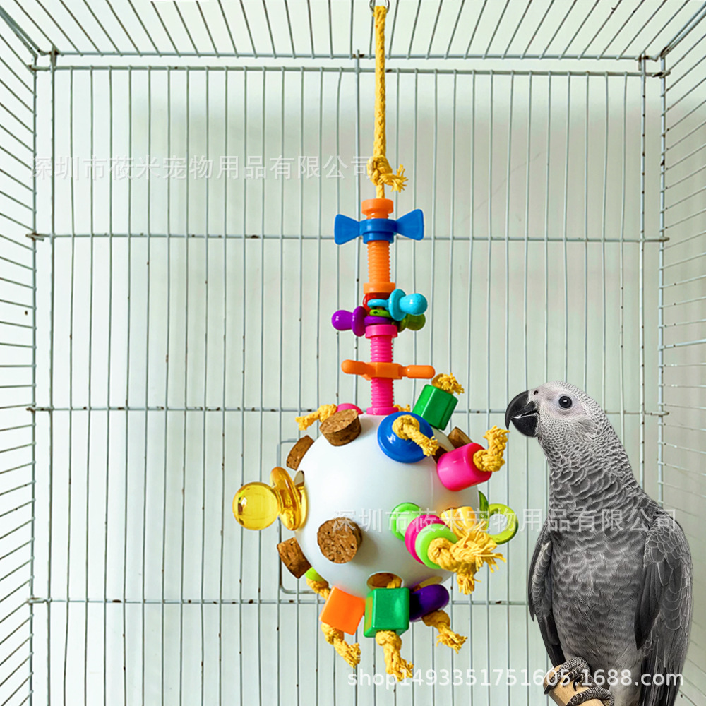 メーカーの卸売りオウム用品はおもちゃの鈴をかじってボールの足元の足をつかんでおもちゃの駅の駅の棒をつかみます。