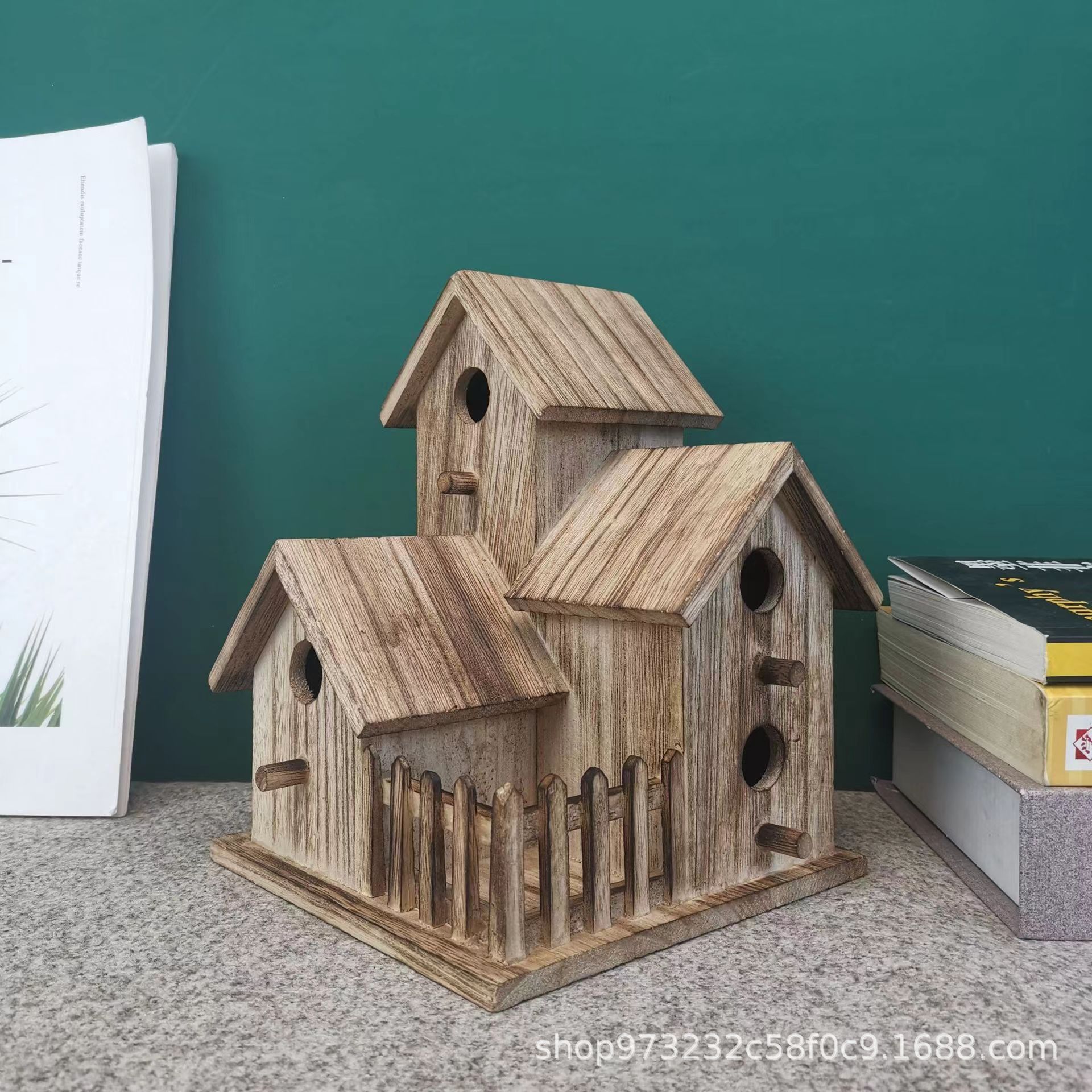 創意木製鳥屋小屋屋外窓台鳥の巣装飾田園スタイル鳥器木製組み合わせ鳥の巣