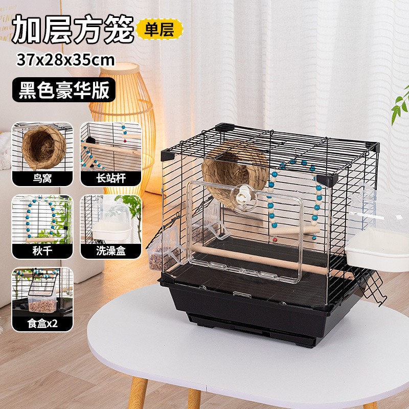 新製品鳥かごセキセイインコ風景鳥かご黒鳳牡丹鳥刺繍目大型ヴィラアクリル観賞ケージ