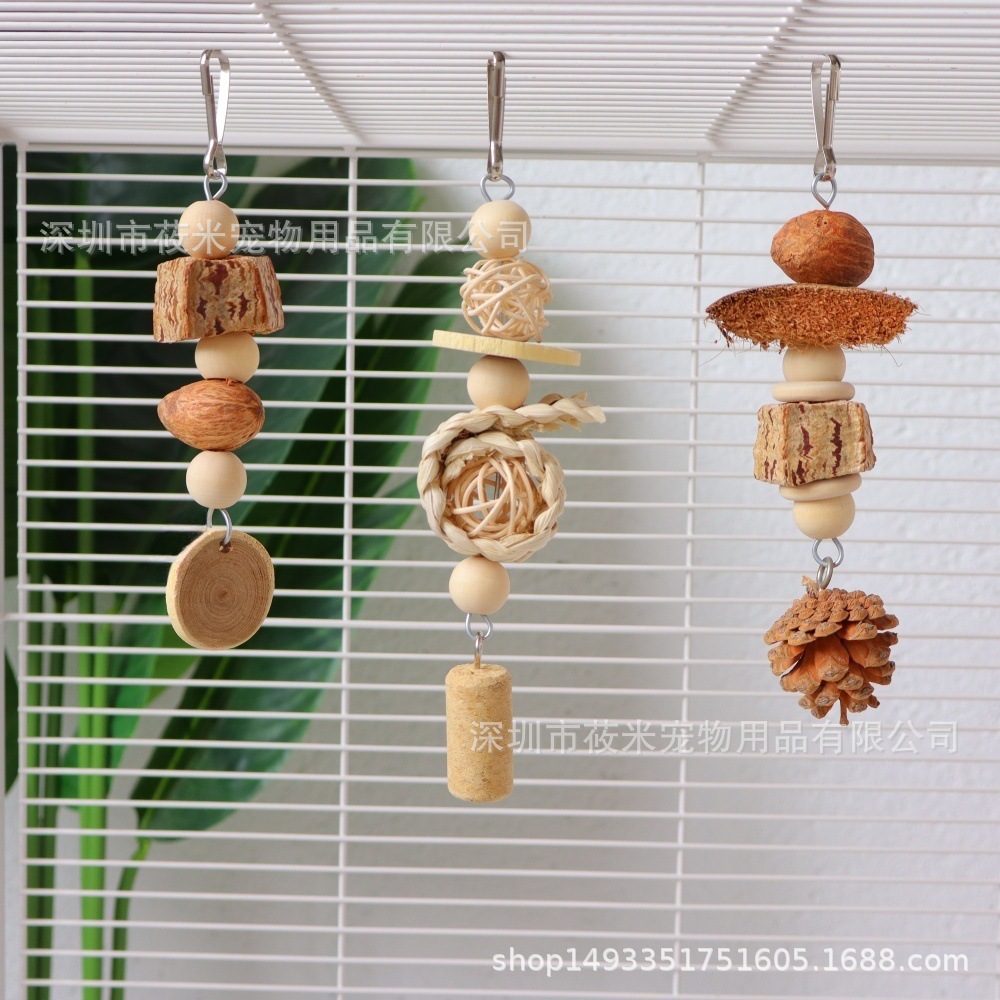 楽しいオウムのおもちゃ、黒鳳牡丹鳥、退屈を和らげる破壊、噛む、串、噛む、ナッツ、松ぼっくり、鳥かごの装飾ペンダント