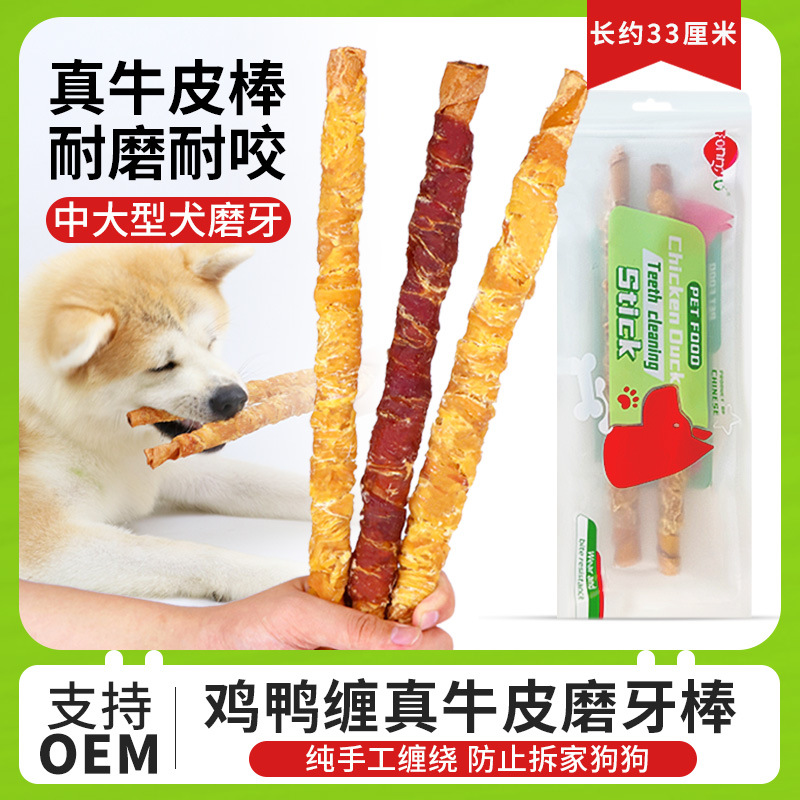 元の工場の商品の供給源のペットの食品の犬の間食の歯磨きの歯の大きい棒の骨の33cmの中の大型の犬の鶏肉は牛の棒を巻きます