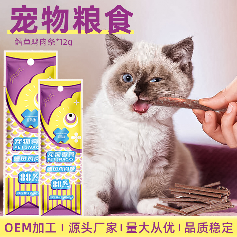 星奇趣タラ鶏肉条12g/袋88% 肉含有量猫間食犬間食肉乾肉条歯ぎしり猫条