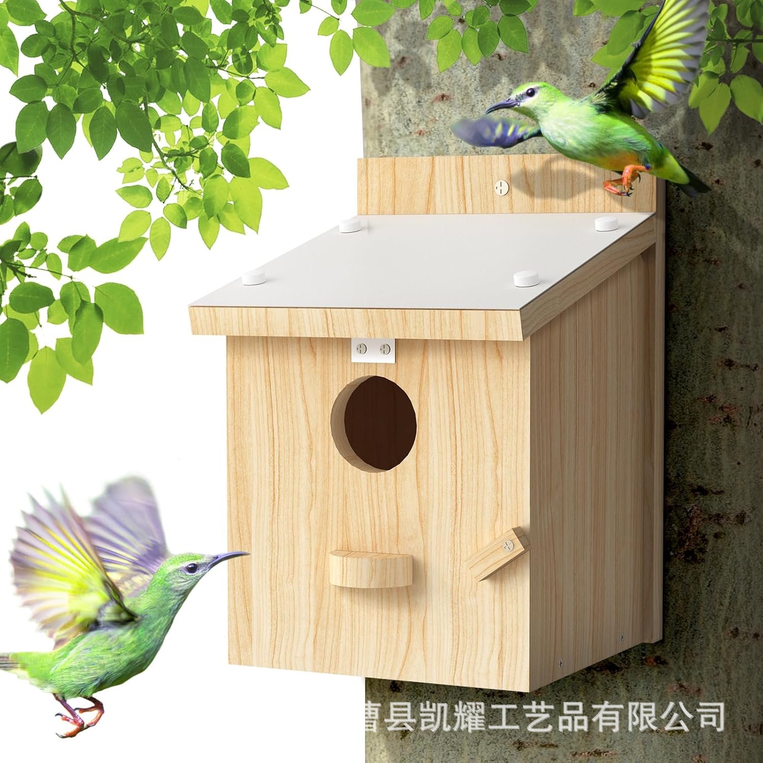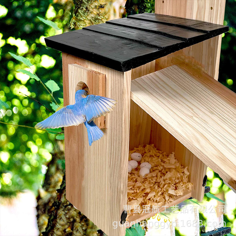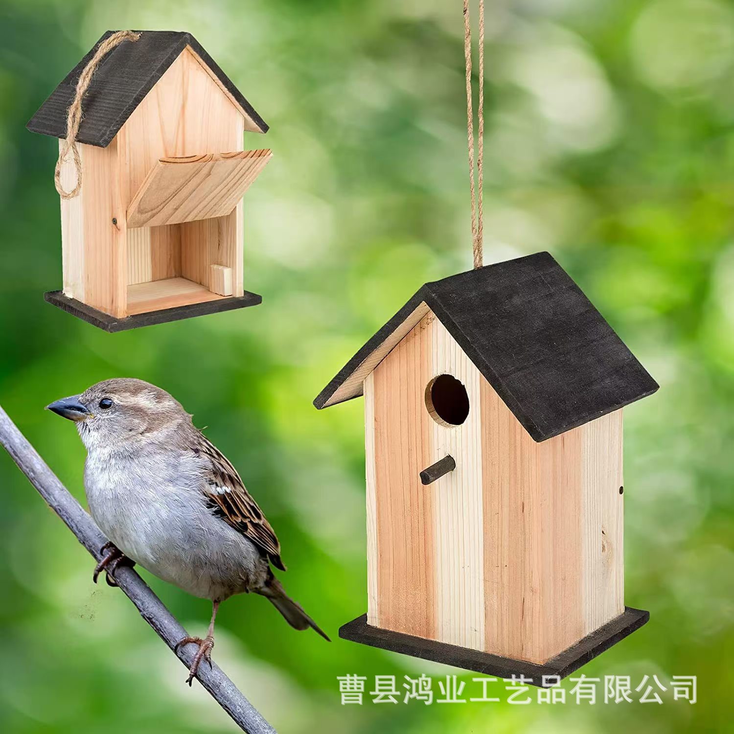クロスボーダー屋外木製鳥の巣ぶら下げ鳥かご庭の装飾鳥の家無垢材の鳥の家鳥の餌箱鳥の巣