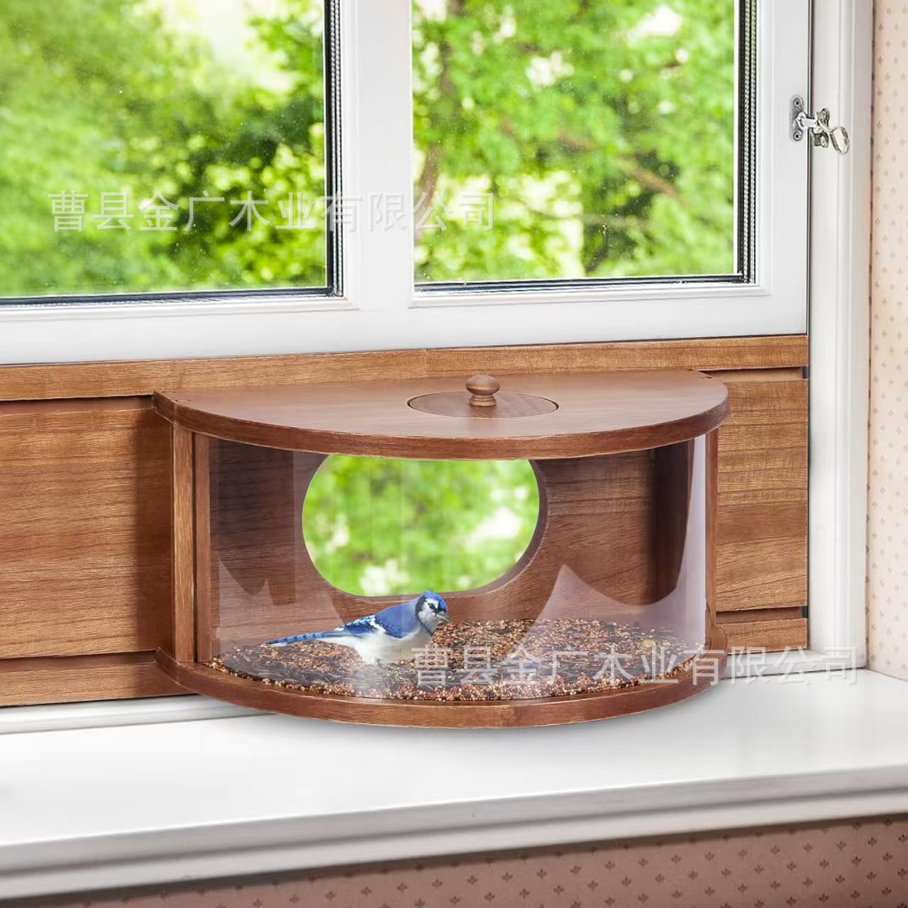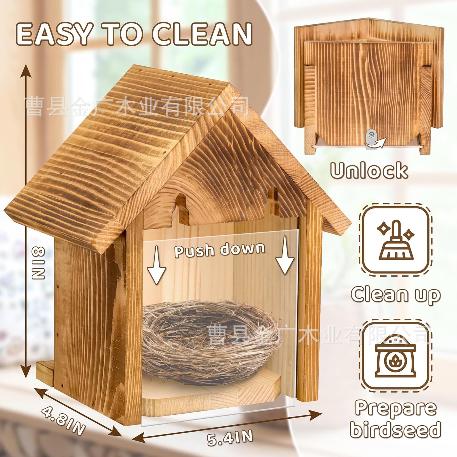 木製鳥の巣屋外鳥の餌箱ガーデンペンダントハチドリハウスフクロウバードボックス窓付き無垢材鳥ハウス