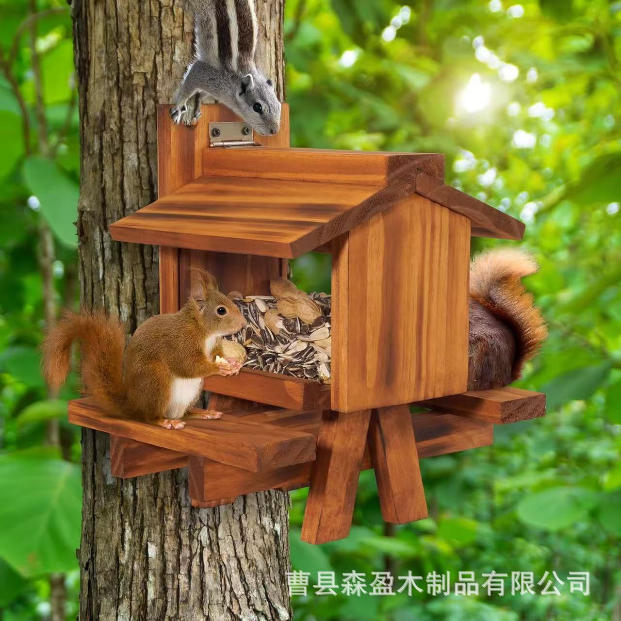国境を越えた木製リス給餌器屋外庭園リスピクニックペット給餌器外吊り式鳥の巣卸売り