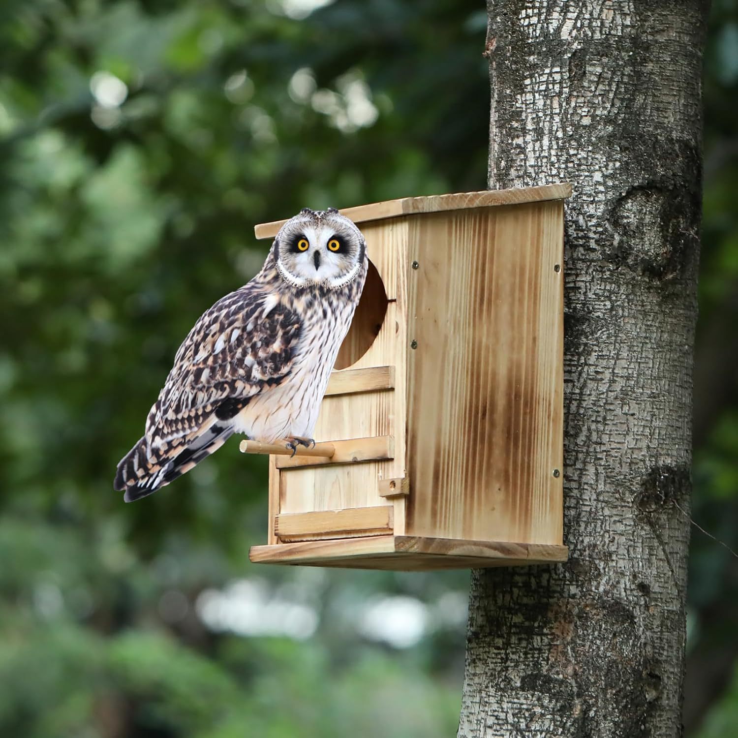 木製フクロウの巣屋外吊り下げ無垢材バードハウスフクロウスクリーハウスガーデンハチドリハウス