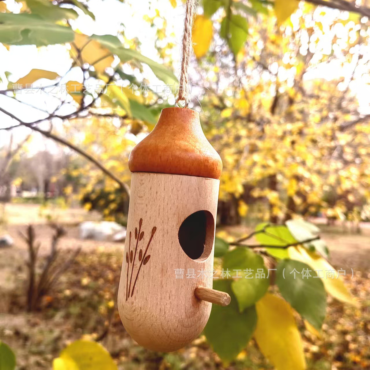 クロスボーダー庭園木質鳥の巣新型実木diyハチドリの巣のペンダント屋外庭園ハチドリの餌やりの卸売り