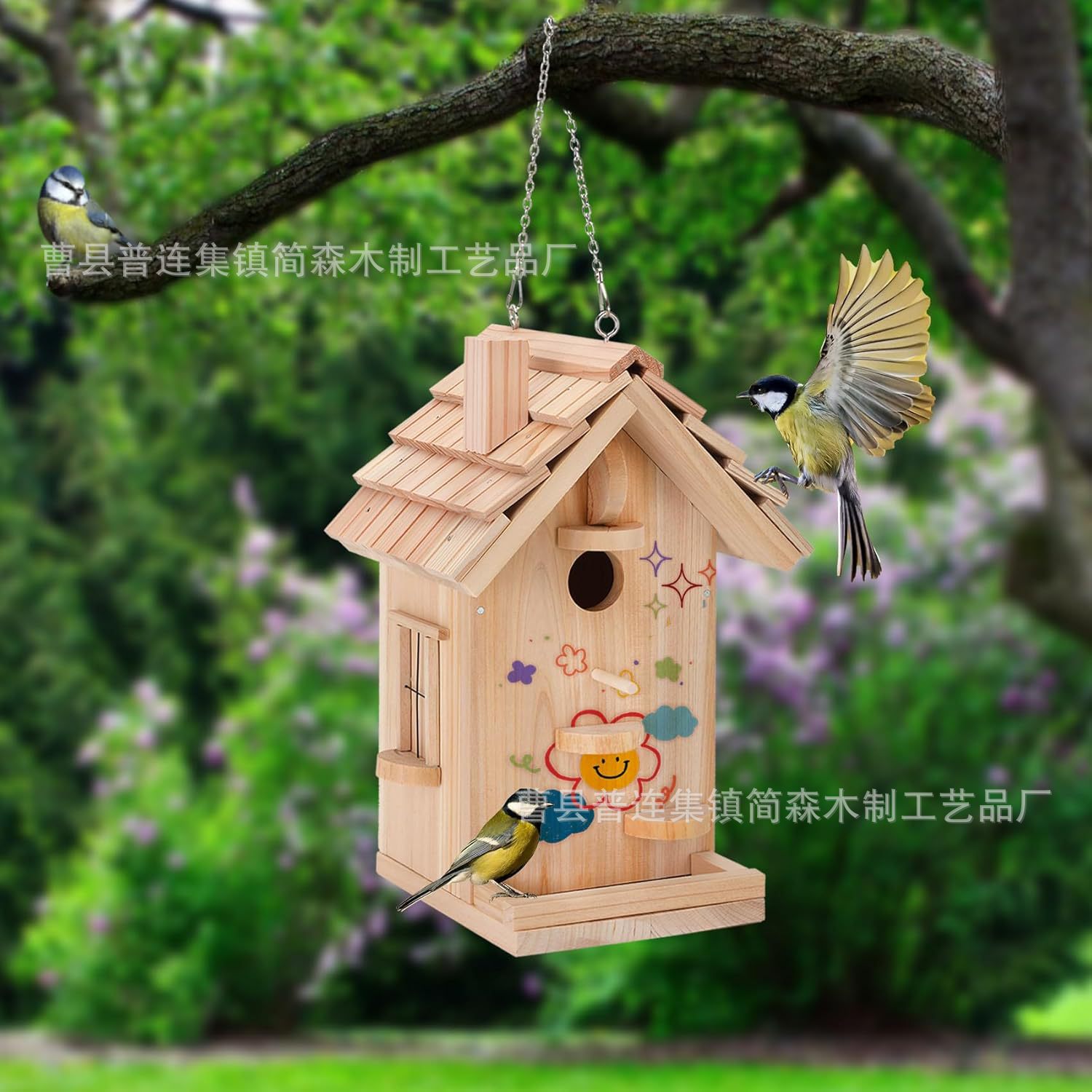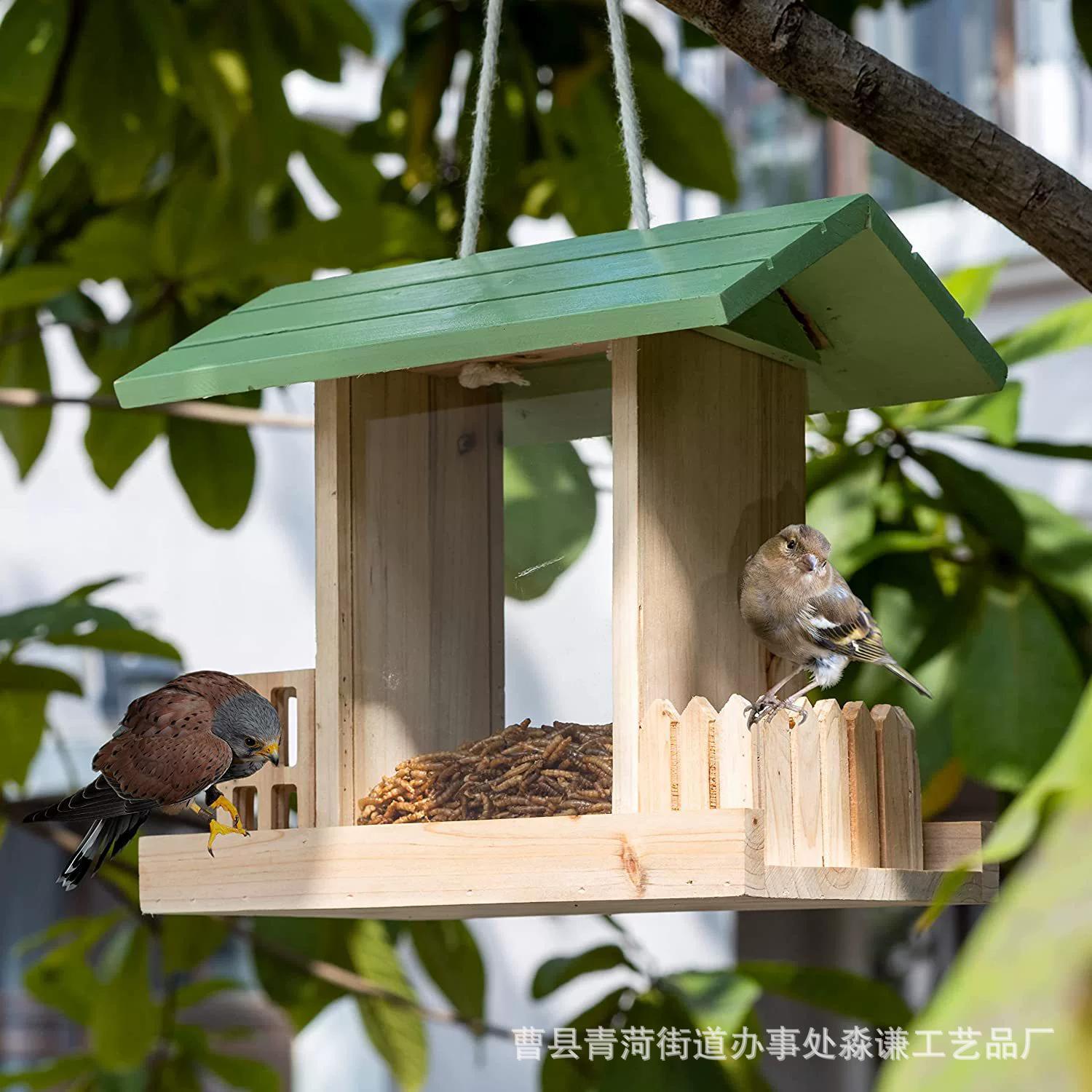 国境を越えた屋外鳥かごハチドリ給餌器園林ストラップ鳥屋吊り木製給餌器花園装飾鳥の巣