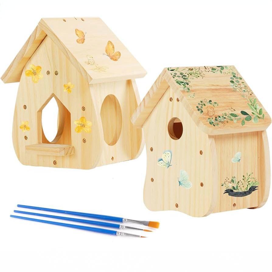 木の鳥の巣の子供の落書きの鳥かごdiyの実木は鳥屋の屋外の庭園の木製の鳥類の繁殖箱をつなぎ合わせます。