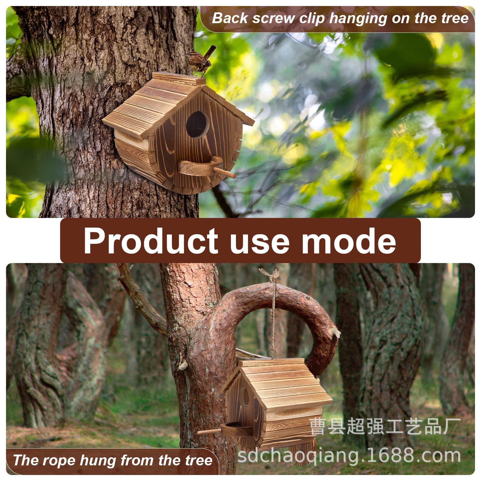 クロスボーダー吊り下げ式木製鳥の巣屋外鳥類給餌器園林公園造景小鳥の巣鳥類繁殖箱