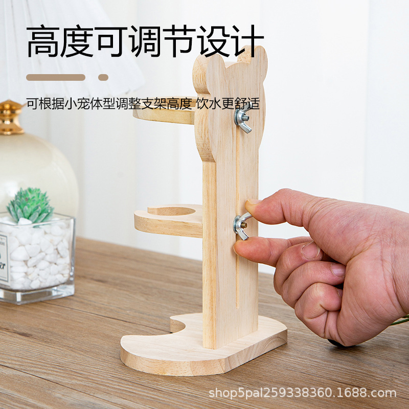 ハムスター金糸熊飲水器縦型超硬噛み防止実木水筒スタンドボール飲水器高さ調整可能