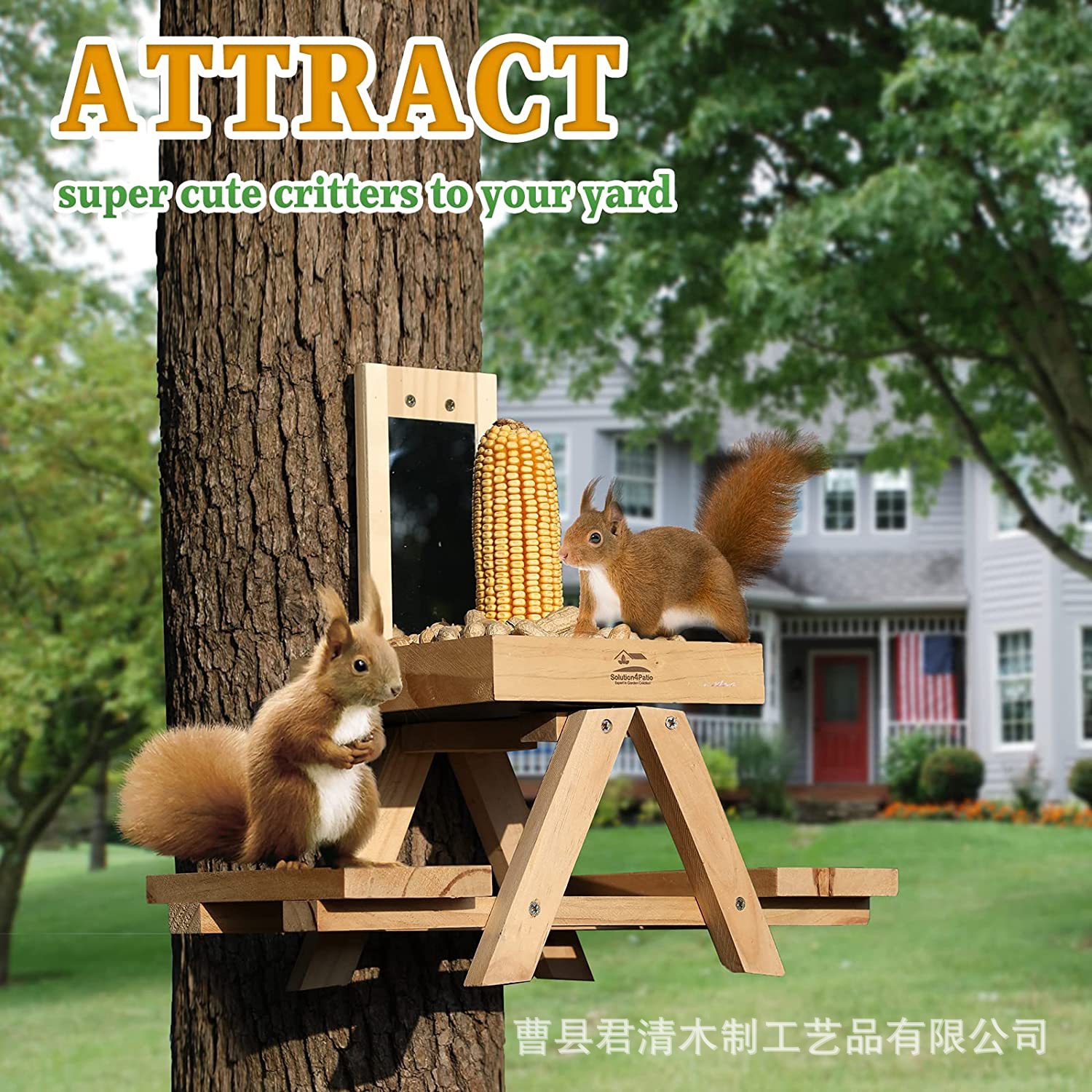 木製リス給餌器木製リスピクニックテーブル木製屋外庭園動物給餌器ストラップ卸売り