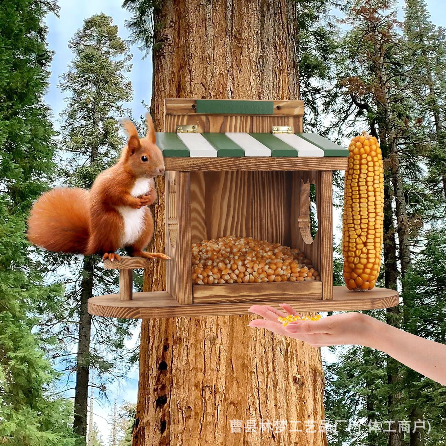 屋外庭園野鳥リスフィーダー外付けリススナックボックス鳥の餌箱木製リスフィーダー