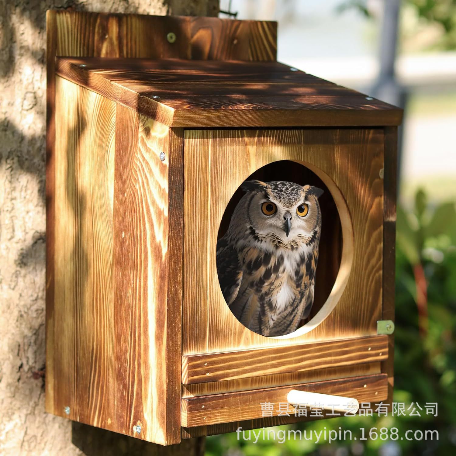 木製鳥の巣屋外鳥の餌箱ガーデンペンダントハチドリハウスフクロウバードボックス窓付き無垢材鳥ハウス