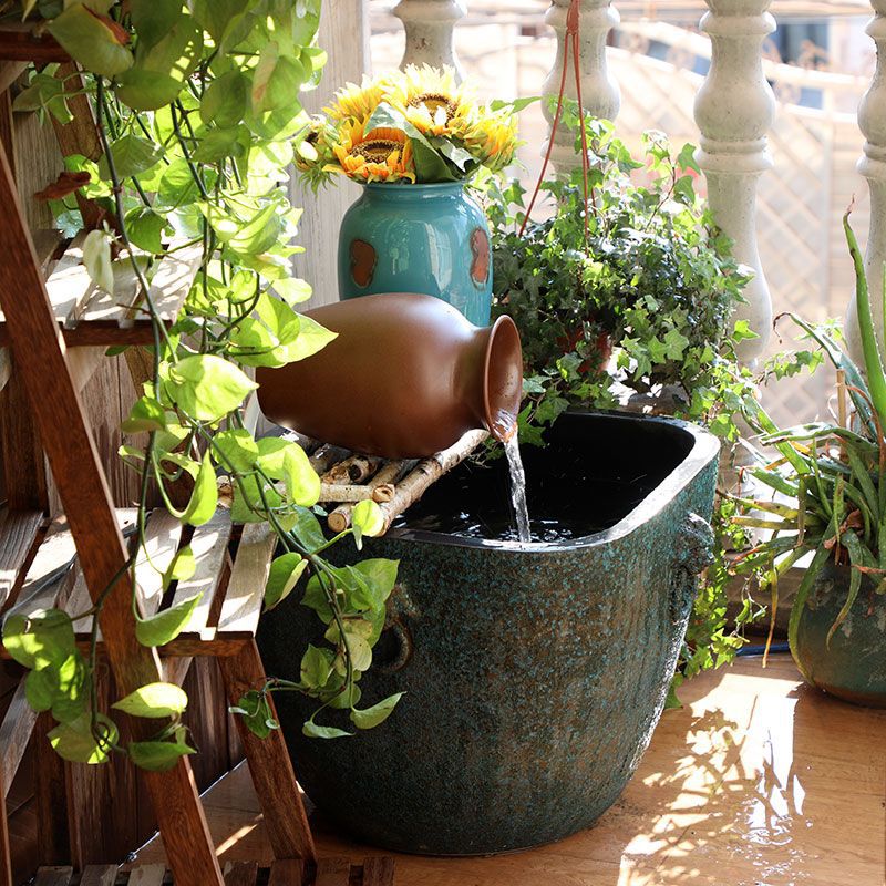 景徳鎮陶器水槽、睡蓮鉢、蓮大水槽、蓮鉢、亀水槽、流水風景
