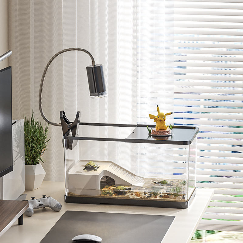 カメの飼育タンクの家庭用水槽のリビングルームの小型はカメの専用箱の生態の造景を飼って、テーブルのデスクトップのカメのかめを干します。