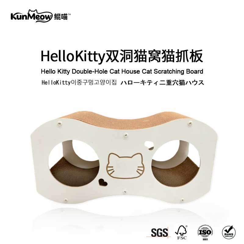 クンミャオ(KunMeow)ホワイトハローキティ二重穴猫ハウス兼爪とぎ板一体型、四季対応、日本と同じモデル