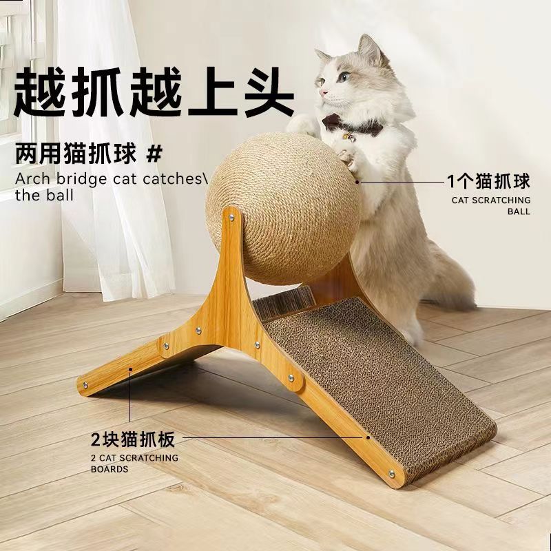 猫つかみ板猫玩具木製猫つかみ球つぎ爪手巻き剣麻縄猫登り架耐久性猫つかみ柱ペット用品