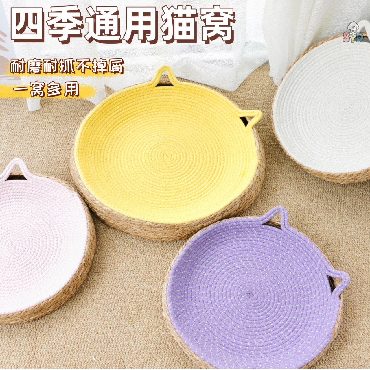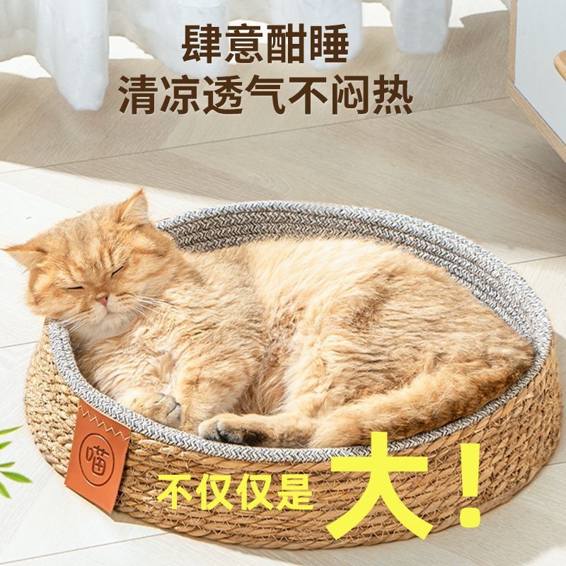 粗麻藤編猫窩四季通用夏猫床編み猫睡眠用マット夏犬窩ペット