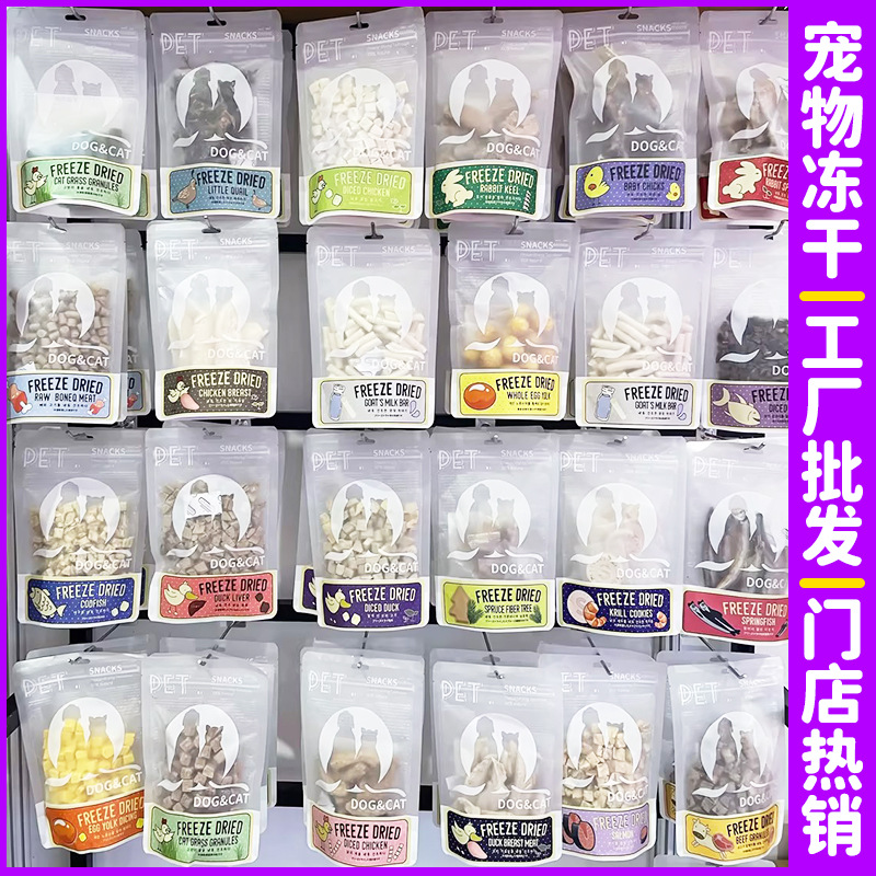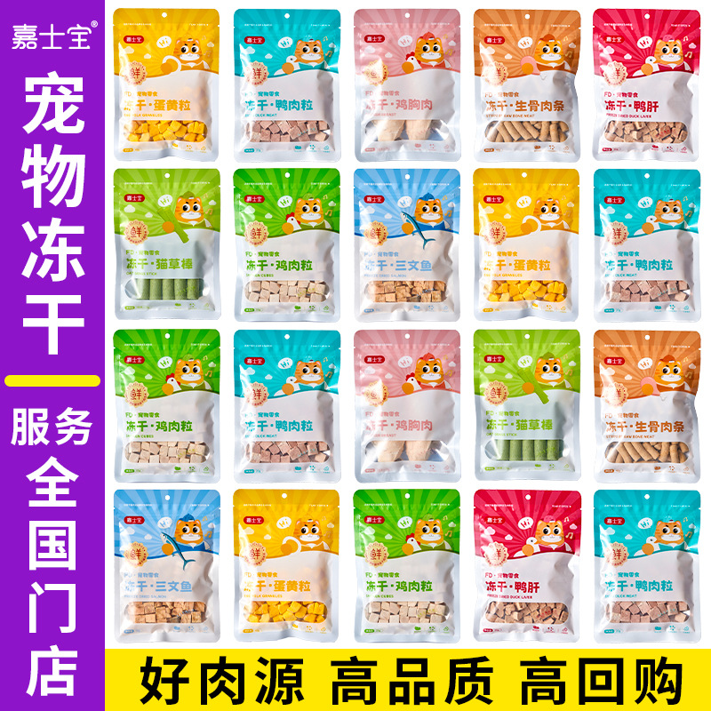 ペット冷凍乾燥鶏肉粒卵黄鶏小胸サーモン猫草棒鴨肉粒冷凍乾燥骨肉ペットスナック