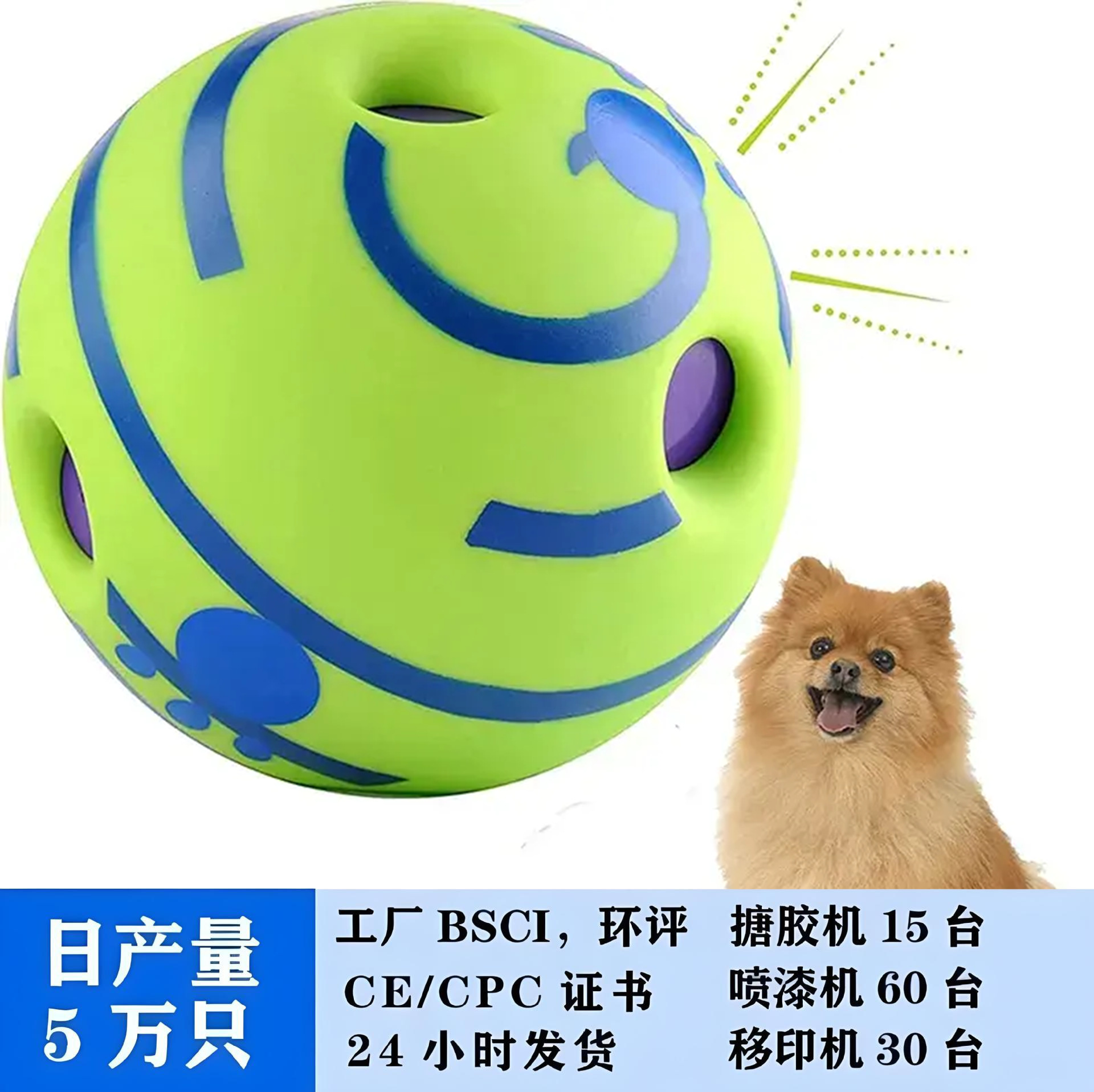 国境を越えて人気の緑色のペットボール、猫と犬の歯ぎしり用、自発的な歯ぎしりボール、犬用ペットの回転音ボール