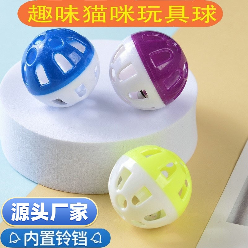 工場直販中空ベルボール面白い猫ボール二色プラスチック中空ボール猫インタラクティブ教育ボール在庫卸売
