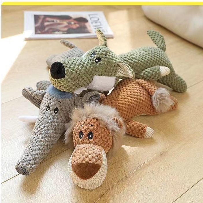 犬のぬいぐるみのおもちゃはコーキテペットの中型犬の歯ぎしりに耐えます。