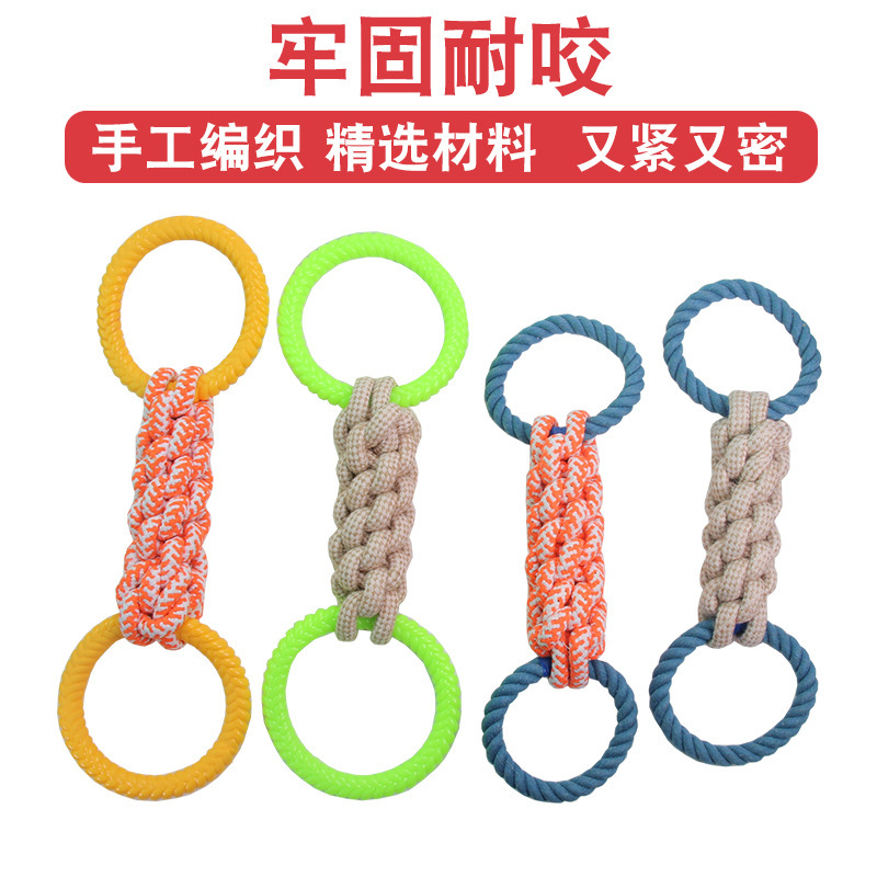 国境を越えた売れ筋のペット用おもちゃ、噛みつきにくい歯固め、編みロープ、中型犬と大型犬の綱引きインタラクティブノット犬用おもちゃ