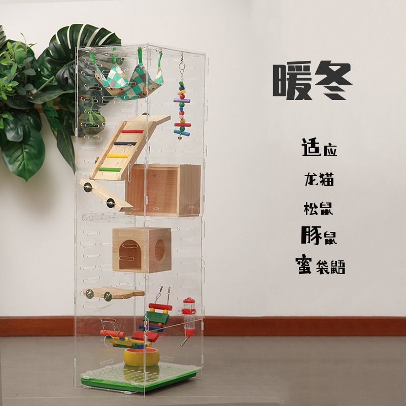 トトロの箱のかごの別荘のアクリル透明の別荘はペットの小さい蜜の袋を跳ぶことが好きです。