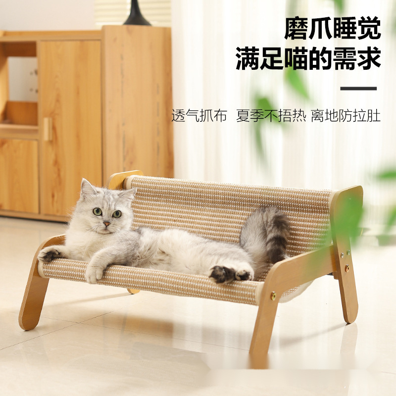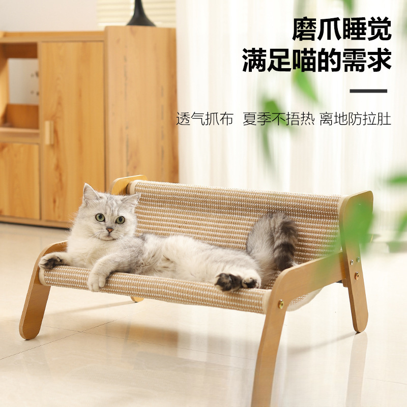 サイザル麻猫スクラッチボード耐摩耗性大型猫ソファオールインワンリクライニングチェア四季ユニバーサル木製ペットハンモック猫の巣