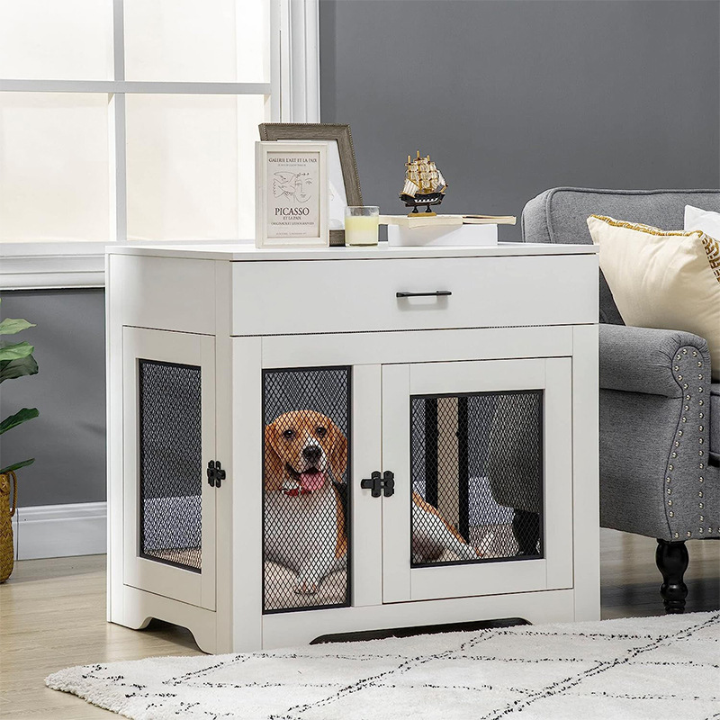 アマゾン越境ペット家具犬籠戸棚箱端テーブル木製ワイヤー鉄木室内犬小屋猫屋白色