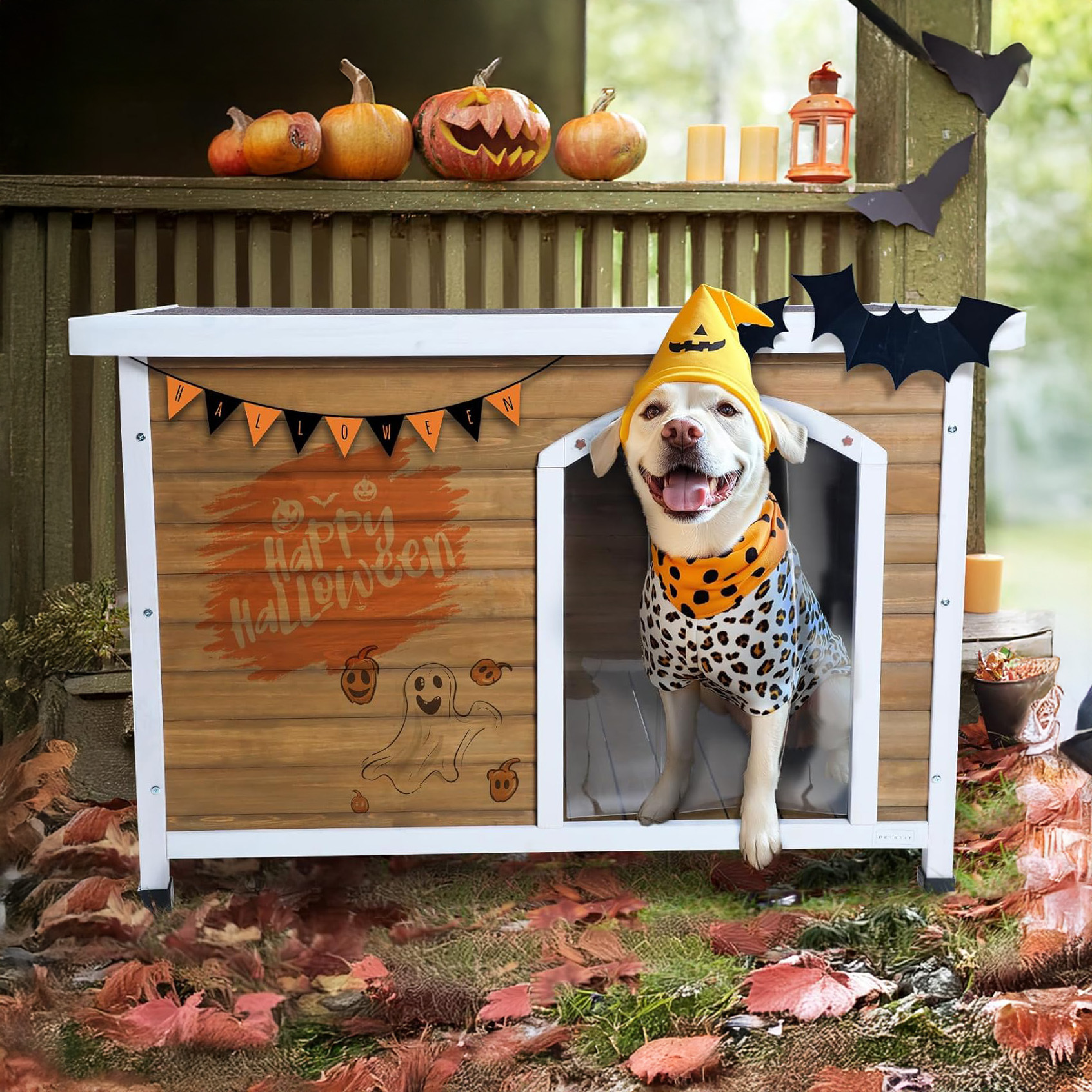 Amazon クロスボーダー木製犬用ヴィラ 屋外用モミの木製犬小屋 コンパートメント付き オールシーズン対応のユニバーサル木製ペットハウス
