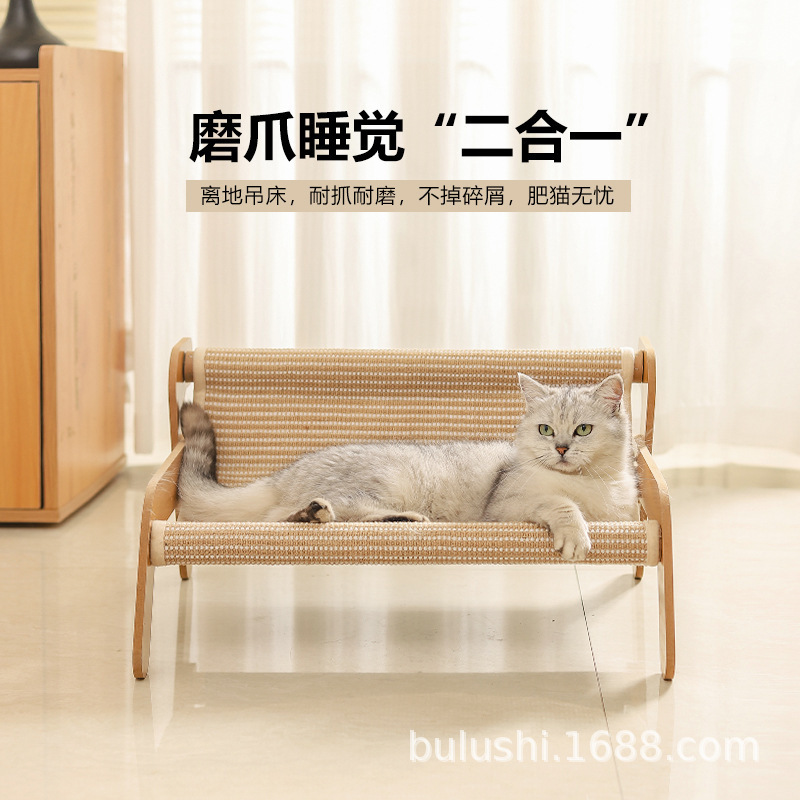 サイザル麻猫スクラッチボード、耐摩耗性大型猫ソファ、オールインワンリクライニングチェア、オールシーズン対応のユニバーサル木製ペットハンモック猫の巣