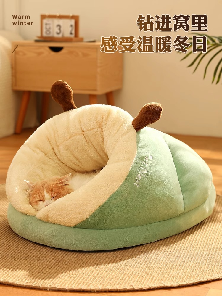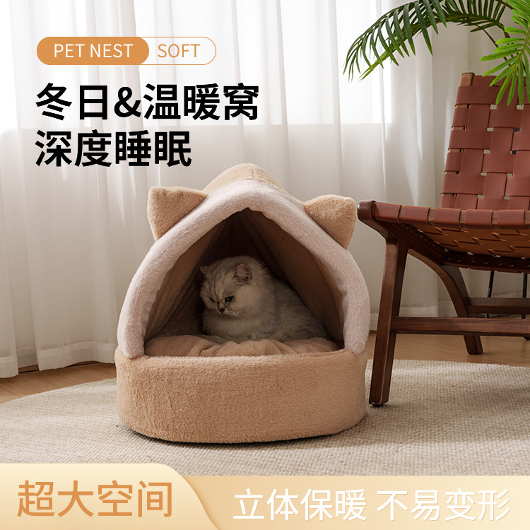 2024新型斜口半閉式小包かわいい猫の巣ネット赤猫の巣犬の巣冬保温犬の巣ペットの巣