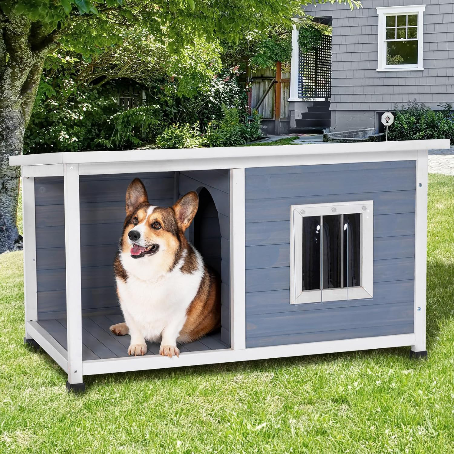 Amazon クロスボーダー木製犬用ヴィラ 屋外用モミの木製犬小屋 コンパートメント付き オールシーズン対応のユニバーサル木製ペットハウス