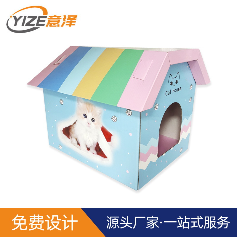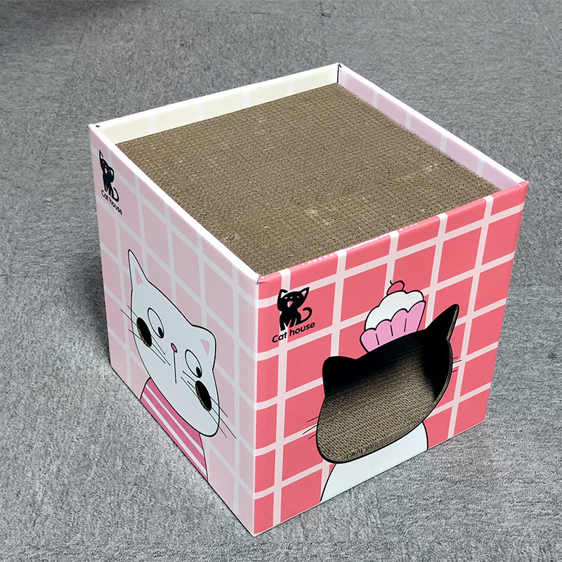 メーカーカスタム段ボール猫屋卸売りの美しい印刷牛乳箱猫掴み板玩具折り畳みペット猫巣