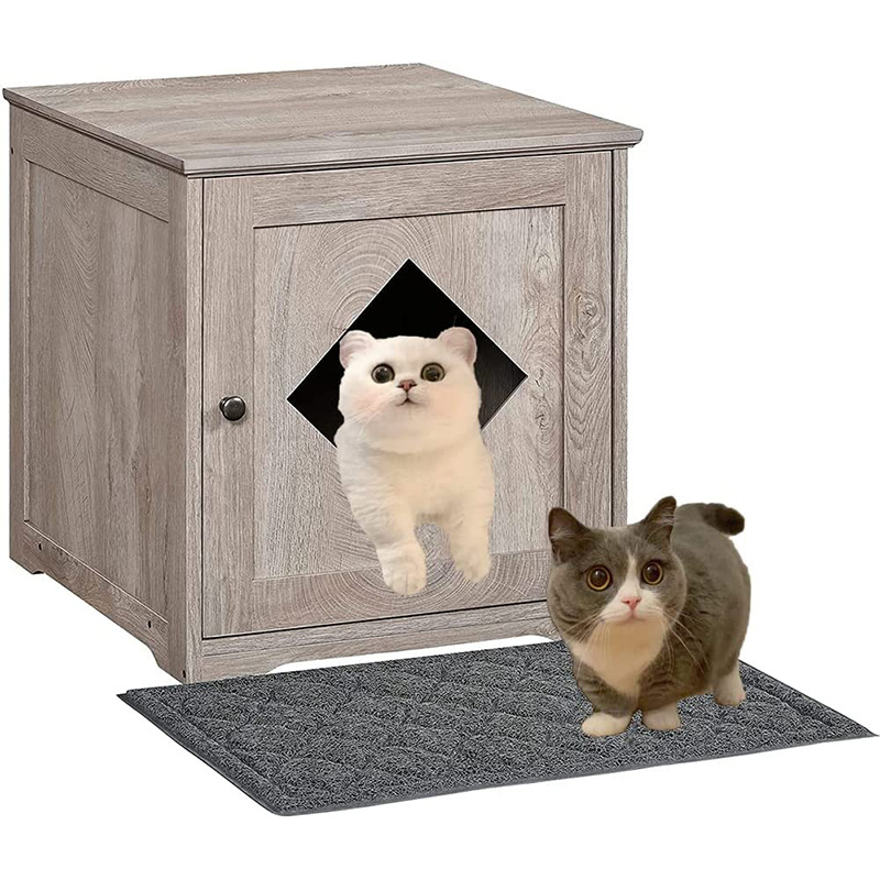 現代シンプルな木製室内隠し猫砂箱猫掻きマット付き猫トイレ室内猫屋茶卓