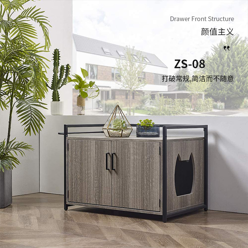 木製室内隠し猫砂盆客間多機能キャビネット二合一家具引き出し付きスクレーパードア猫屋