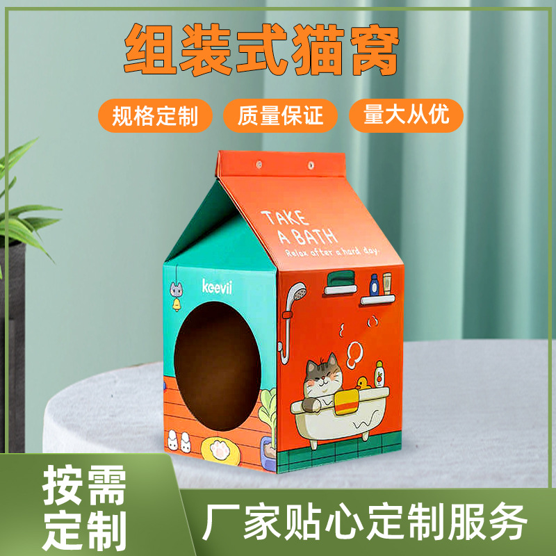 猫スクラッチボードタイプの猫の巣カスタマイズされた組み立てられた猫ハウス耐摩耗性で欠けのない段ボールペットハウスカートンタイプの猫の巣